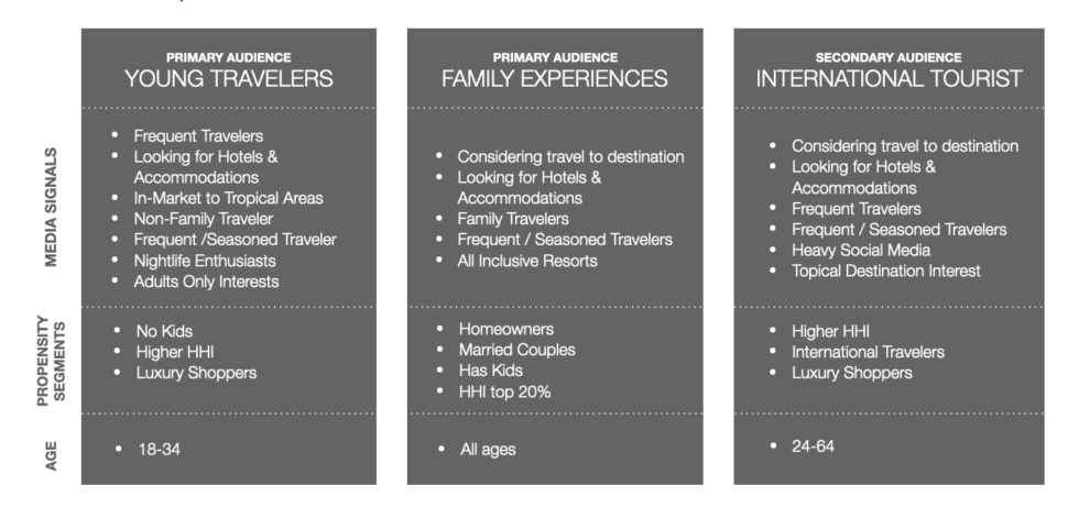 Qualified travelers were identified and targeted using our Audience-First approach. With our personalized and data-driven approach, we began to identify the signals and segments that make up the ideal target audience segments. Identifying the actions, interests, and behaviors of a consumer in conjunction with signals based on the consumer’s behavior and characteristics – we were able to define strategic data-based audience segments for our client.